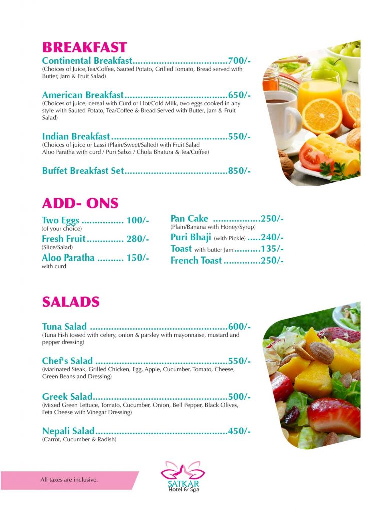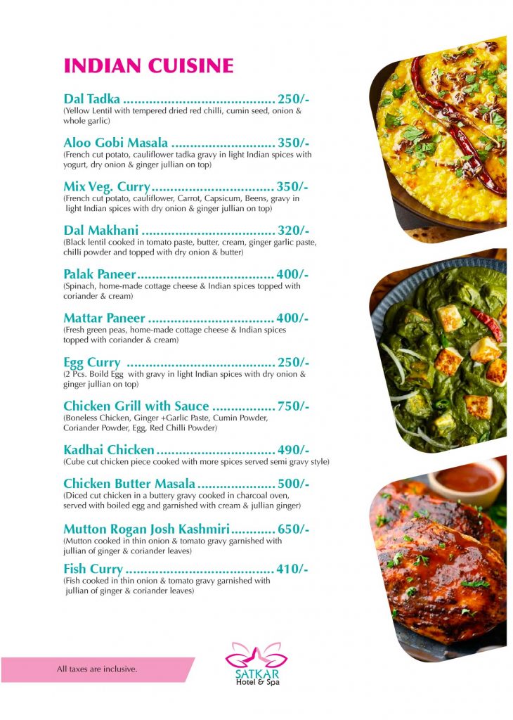Prepare to embark on a culinary journey like no other, only at Satkar Hotel and Spa in Kathmandu. Indulge in the authentic flavors of Nepal, complemented by travellers favorites, and create lasting memories with every bite. Book your stay today and experience the ultimate in Nepali hospitality and gastronomy.